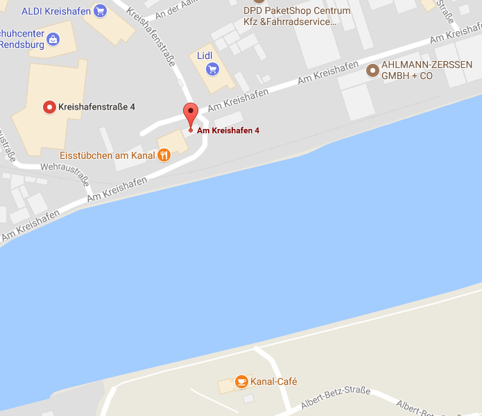 Die HafenART Galerie in Rendsburg ist ausgezeichnet per Bahn (vom Bahnhof aus etwa 15 Min. Fussweg) oder mit dem Auto über die A7 —> A 210 —> B 202 —> B 77, dann die erste Abfahrt nach dem Tunnel zu erreichen.